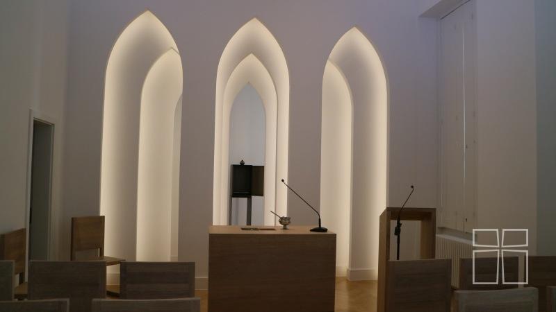 A nővérek hálájukat fejezték ki a 3h építésziroda munkatársainak a tervezésért és a szakmai kísérésért. Gunther Zsolt, az építésziroda vezetőjének írását távollétében kollégája, Korsós Mónika olvasta fel és mutatta be az építészeti munkát. 2012-ben kezdődött a közös gondolkodás a nővérekkel a rendház megújításáról. 12 év hosszú idő, talán nem véletlen, hogy pont ennyi, hiszen a 12 egy különleges szám. Az évek alatt a rend és az építészek egyre erősebben kapaszkodtak egymásba, a homályos cél egyre inkább testet öltött, száműzve a sok bizonytalanságot. Nehéz megpróbáltatások, küzdelem kísérte a folyamatokat, de a rend végig türelemmel kísérte ezt és elkötelezettségük meghozta a gyümölcsét. A rendház megújításakor igyekeztek a rend lelki és szellemi hagyatékát élővé tenni, a láthatatlan örökséget láthatóvá varázsolni a tiszta formákban. Az építész sok-sok 12 év csendes építkezést kívánt nyugodt lelkiséggel, hogy ez egy olyan hely lehessen, ahol a test és lélek otthonra lel.