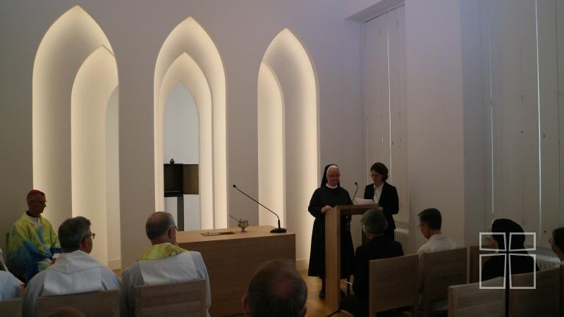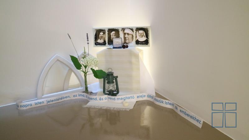 A hitvallást és egyetemes könyörgéseket követően, Petra nővér átadta a rend három boldoggá avatott tagjának ereklyéjét. Boldog Ulrika Nisch, Boldog Maria Theresia Scherer anya és Boldog Zdenka Schelingova nővérek ereklyéit püspök atya megáldotta, majd elhelyezte az újonnan felszentelendő oltárba. Az oltár öt helyen történt megkenése után, a püspök megtömjénezte az oltárt, a kápolnát és a híveket.