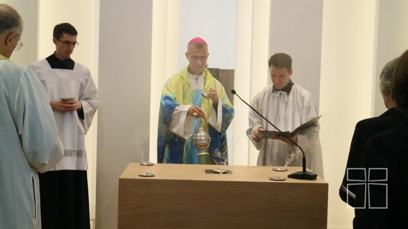 A liturgikus ünneplést Martos Levente Balázs, az Esztergom-Budapesti főegyházmegye segédpüspöke nyitotta meg és megáldotta a kápolna falait és az oltárt szenteltvízzel.